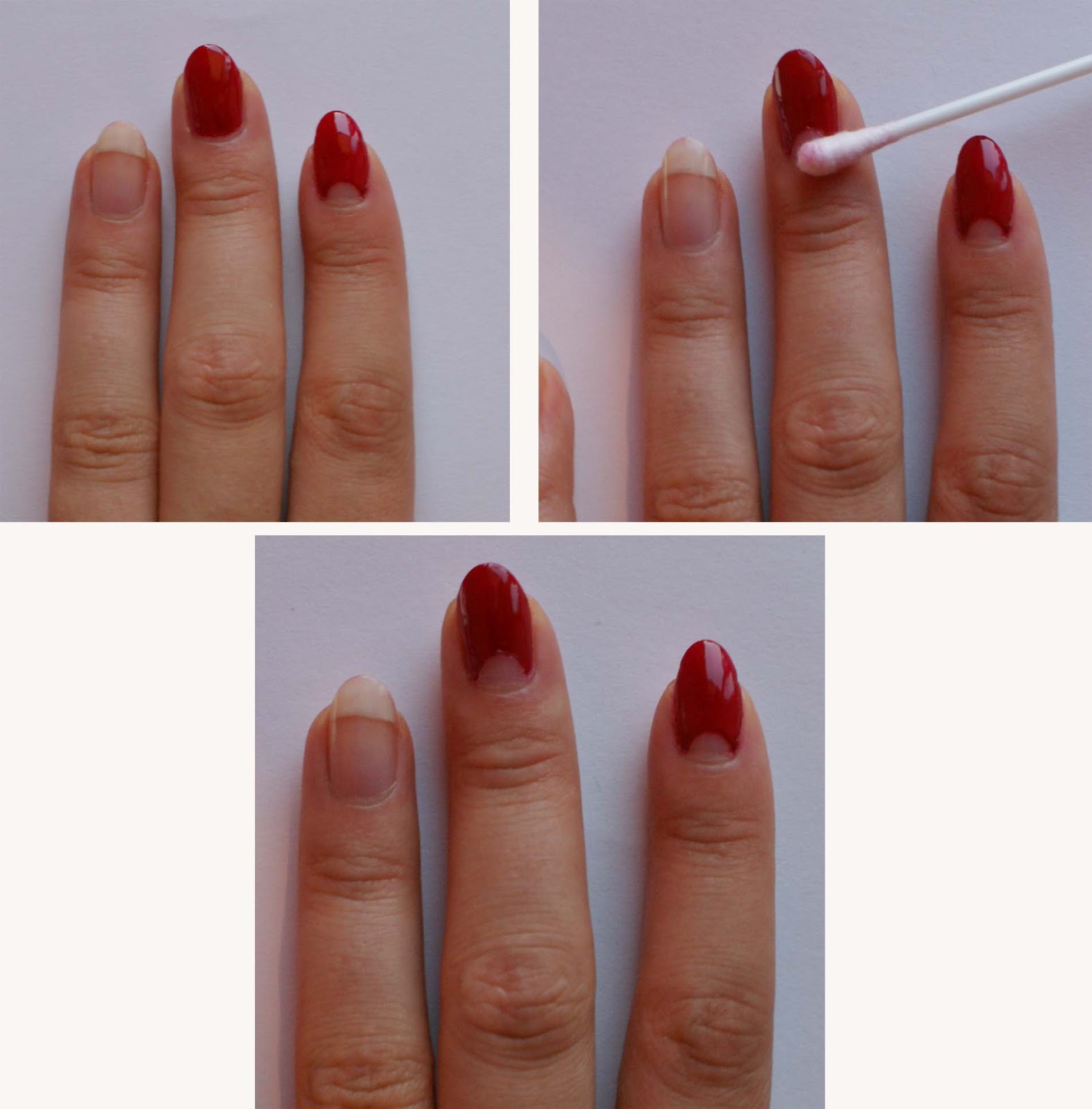 3. Using cotton bud moistened with nail-varnish remover, wash away nail polish to get the shape of an arc.